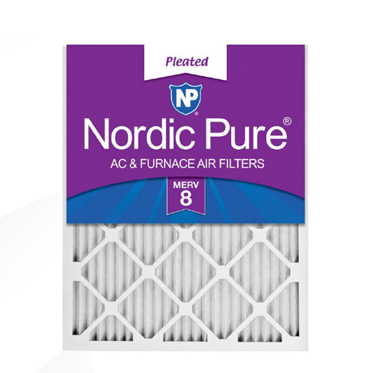MERV 8 Pleated Air Filters Nordic Pure MERV 8 Air Filters are designed to remove 70-85% of airborne particles measuring 3.0-10.0 microns, including lint, dust, pollen, pet dander, and mold spores. Constructed with electrostatically charged synthetic materials, these filters effectively enhance indoor air quality without overly restricting airflow. Each filter features a sturdy, moisture-resistant frame and metal mesh support for reliable performance in HVAC systems. For best results, replace 1-2 inch filters every 30-90 days and 4-6 inch filters every 3-6 months, with more frequent changes in high-traffic or pet-filled environments.
